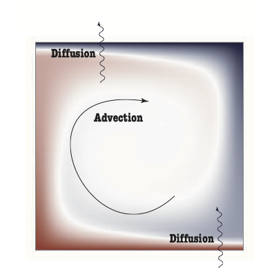 In rigid bodies, we have diffusion and heat production to worry about, but in fluids, heat can be carried from place to place by advection.