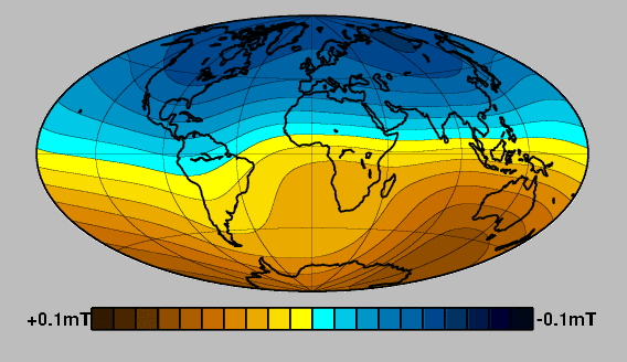 The Earth has a strong, dominantly dipolar, magnetic field which reverses chaotically but relatively regularly. These two features together allow