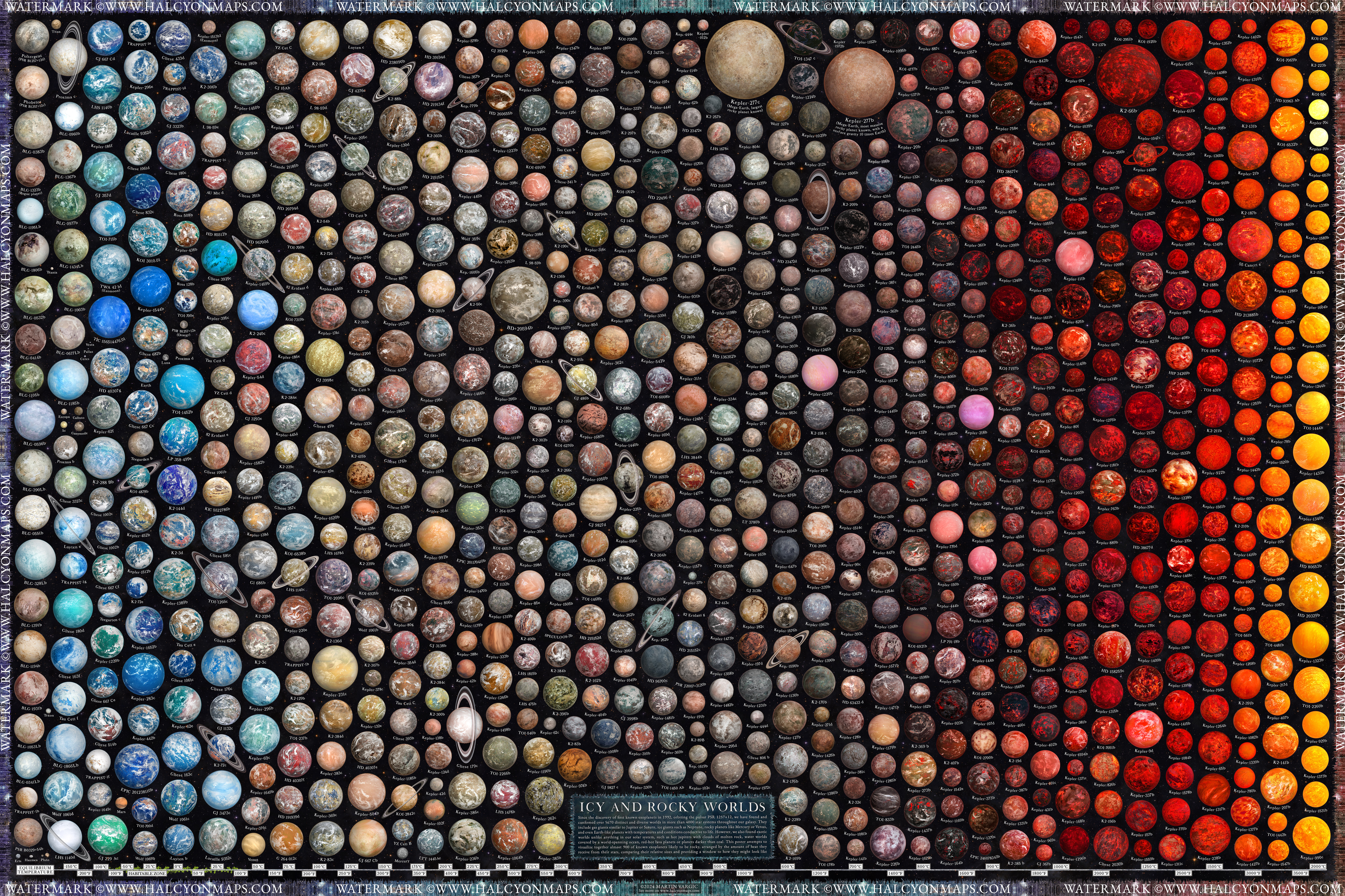 It would be nice if we could add all the exoplanets into this story but, regardless of the detail shown in these images, we only really know mass, radius and surface temperature.