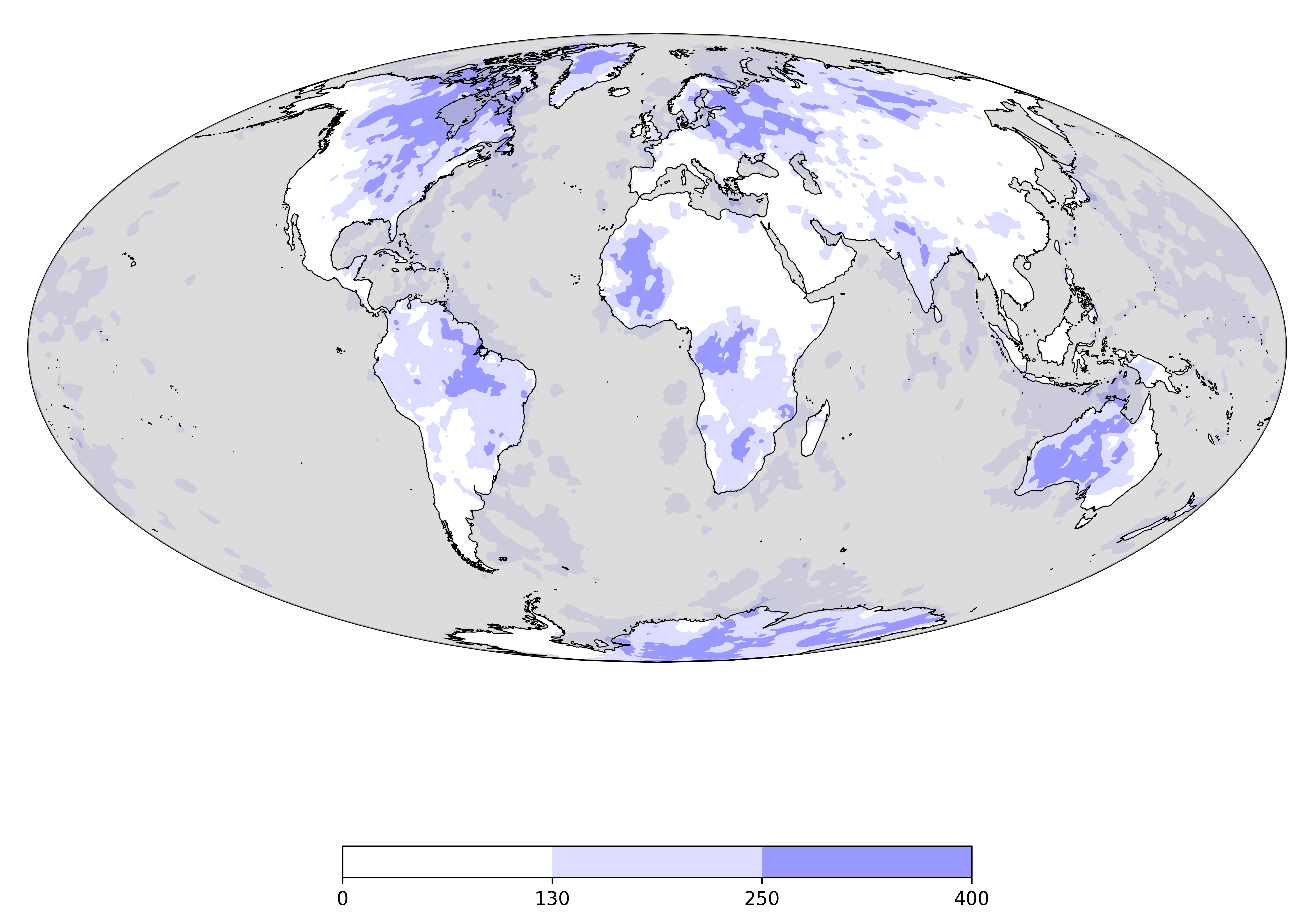 Presence of massive mid-latitude deposits of water ice. There are large areas in Mars’s northern lowlands where hundreds-meter thick ice slabs occur meters below the surface.
