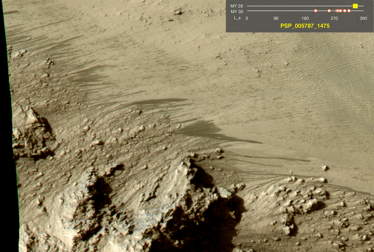 This animationshows warm-season features that might be evidence of salty liquid water active on Mars today. Evidence for that possible interpretation is presented in a report by McEwen et al. in the Aug. 5, 2011, edition of Science.
