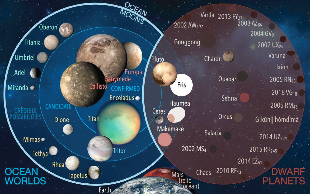 We can also look at the mini-solar systems of the giant planets. Some of the moons of Jupiter and Saturn are the size of small planets.