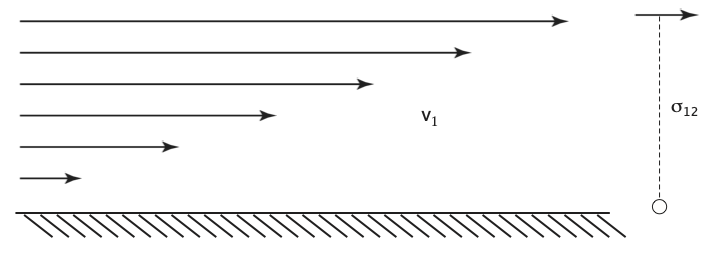 \[ \tau = \eta \frac{d v_1}{d x_2} \]