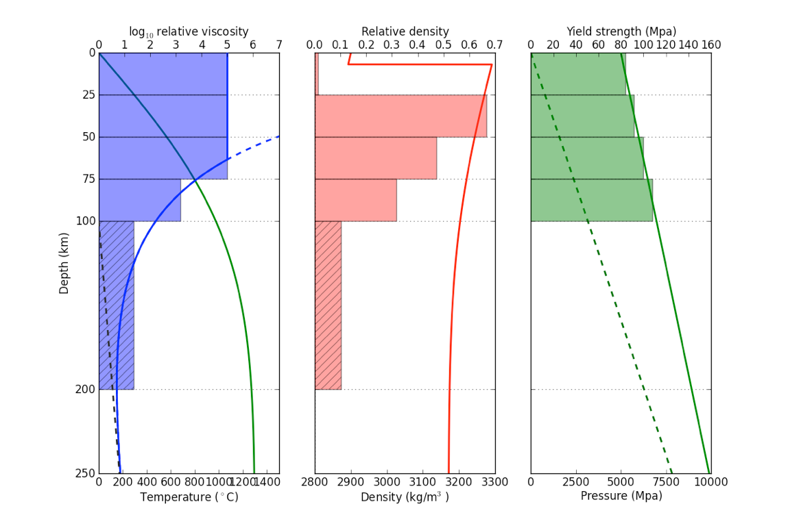The strength, density plot oceanic lithosphere at 120Myr. (Thicker, denser, stronger)