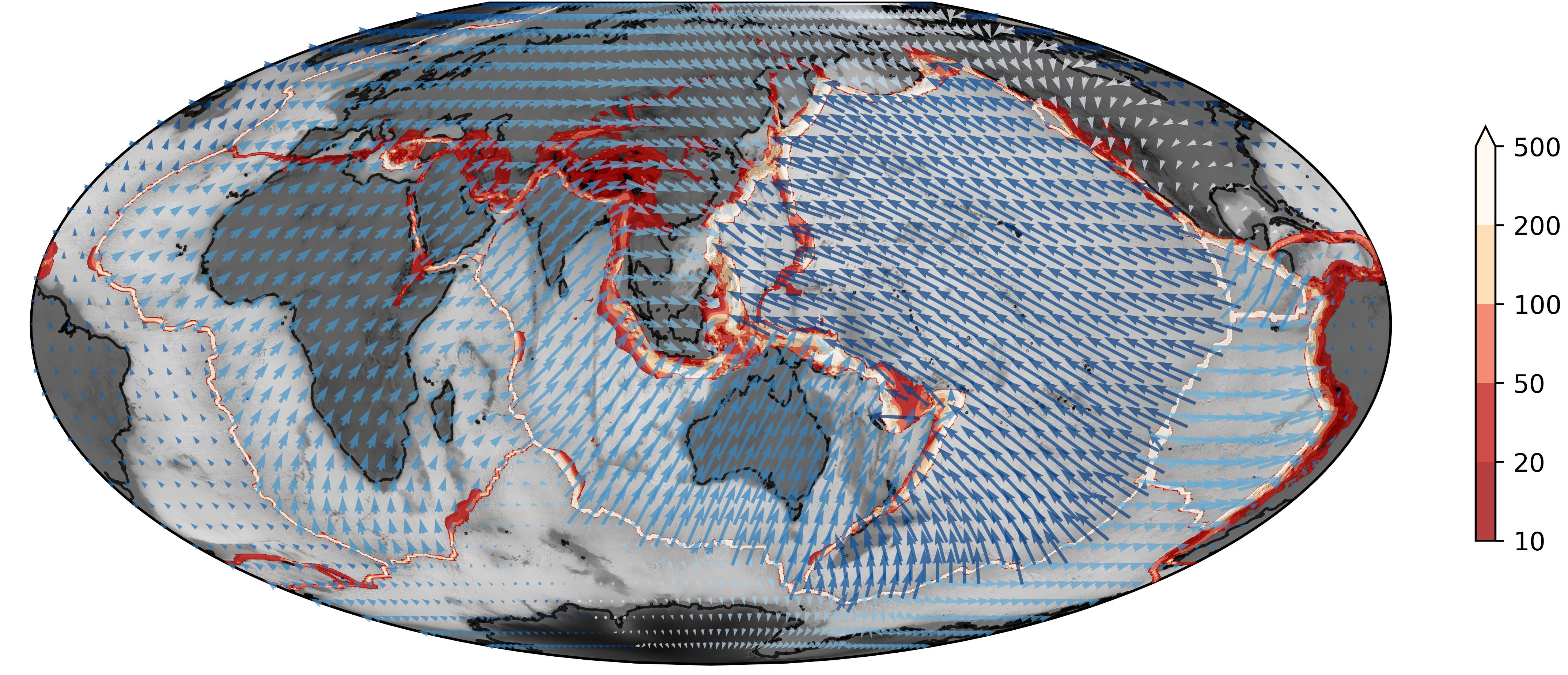 Modern data from the Litho 1.0 global lithosphere model. We can see that there is a signal in the oceans but still this model only sees at a resolution of 1 degree (about 100km).